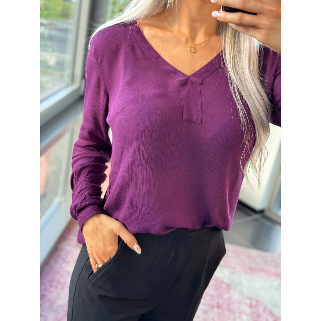 AMBER V-NECK BLOUSE DARK JEWEL PURPLE