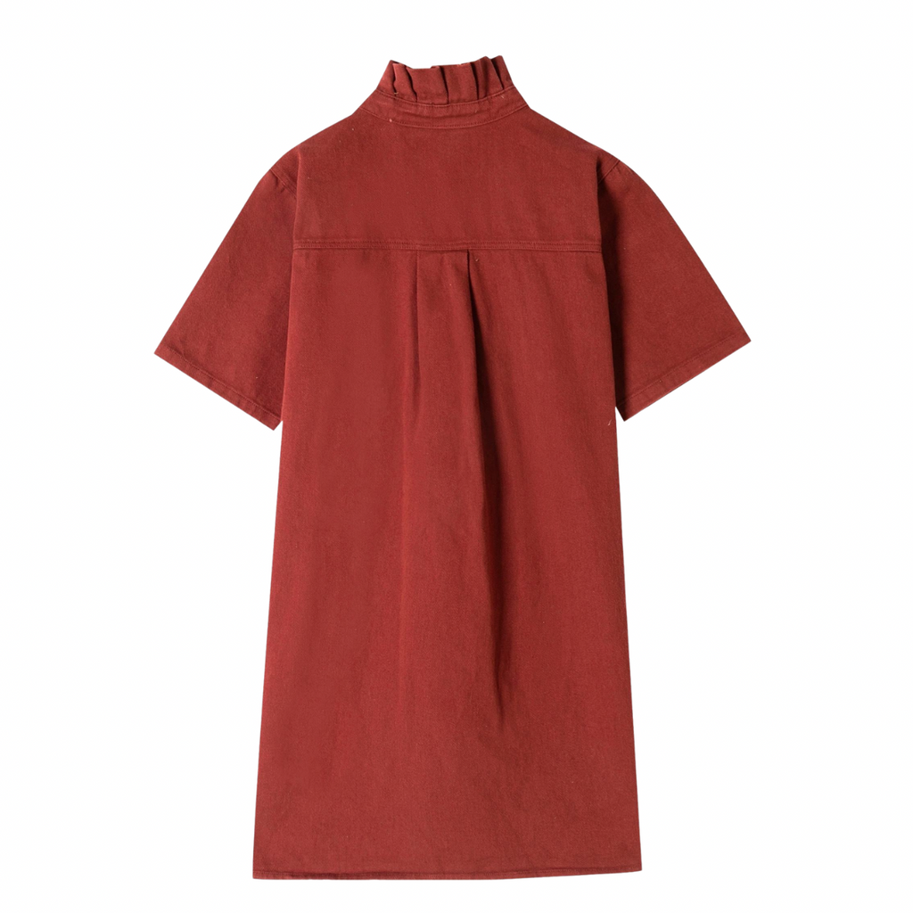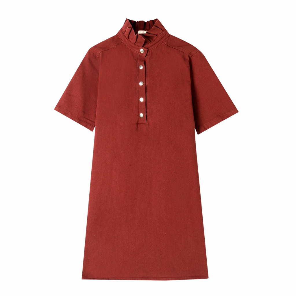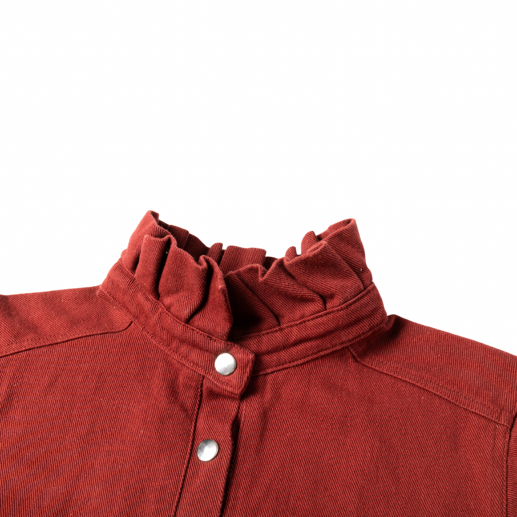 Flot cowboy kjole/tunika i bordeaux fra By Asbæk. Ava kjolen har flæsedetalje ved halsen og 5 sølvknapper. Kjolen har lange ærmer med en enkelt knap, samt en lille slids i begge sider. Kjolen går ca. til knæet, afhængig af hvor høj man er, og har en løs/rummelig pasform.