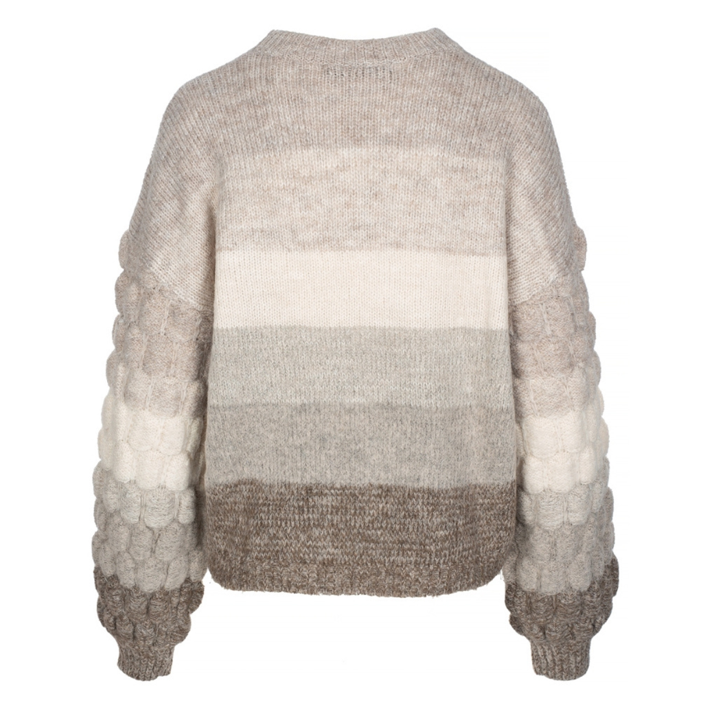 Super flot strik fra One two luxzuz med store flotte boble ærmer, der gør den helt unik. Strikken har ribkant i hals, ærmer og bundkant.