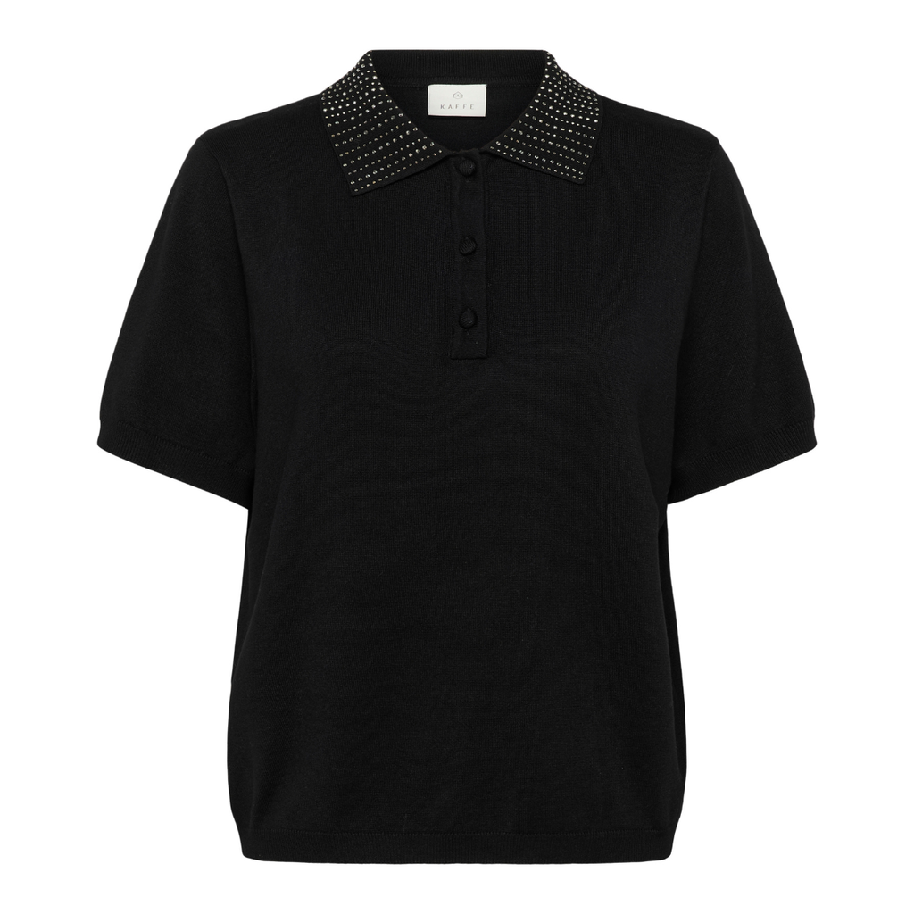 Blød og lækker polo fra Kaffe. Denne smukke polo har kort ærme, afslappet pasform og en flot krave med smukke similisten, som gør den velegnet både til hverdag og fest. Super blød og behagelig at have på.