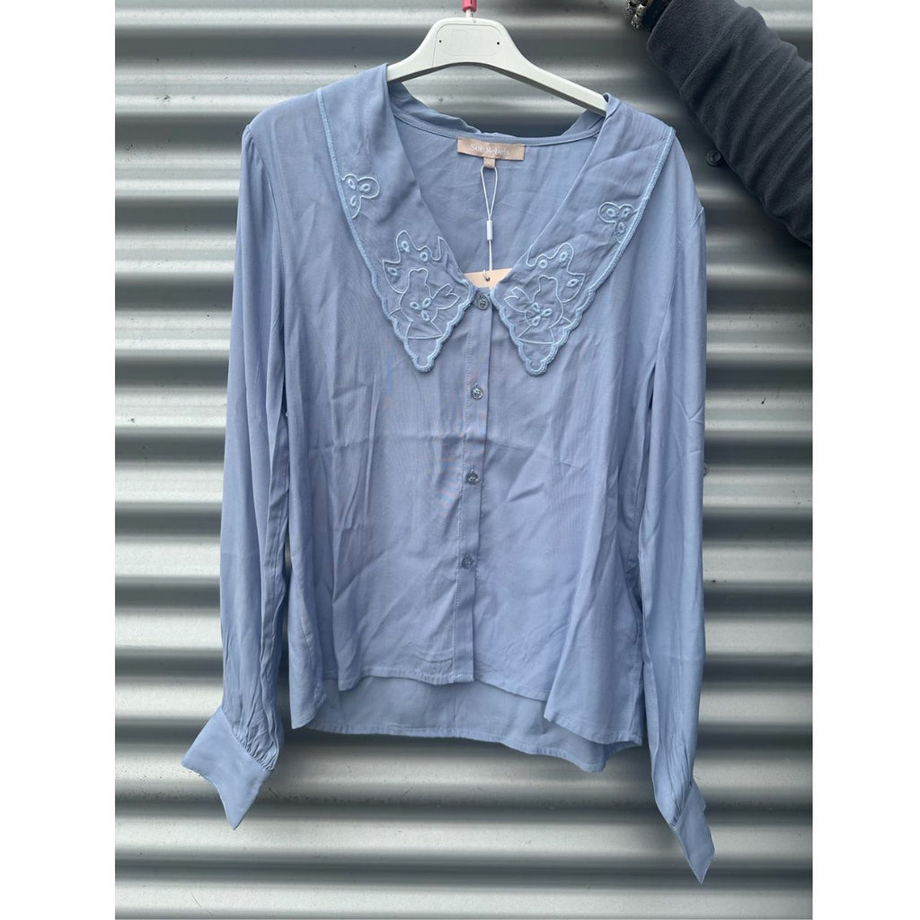 Fin skjortebluse med stor krave - viskose og rayon kvalitet