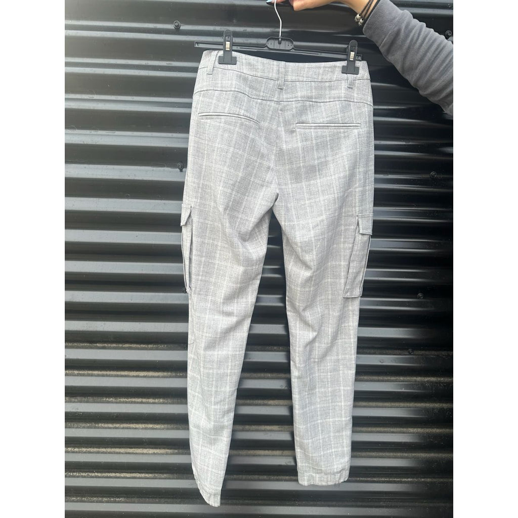 Lækker ternet buks - der er mere grå end sand - god pasform - høj talje - lommer på lår. og side lommer