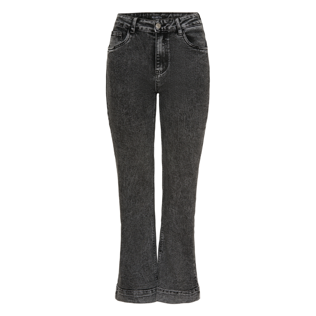 Super fede jeans fra Marta du cháteau i en cool vask. Emelda jeans har godt med stræk, lige ben med let flare forneden og lukkes med enkelt knap og lynlås. De har en normal talje højde.