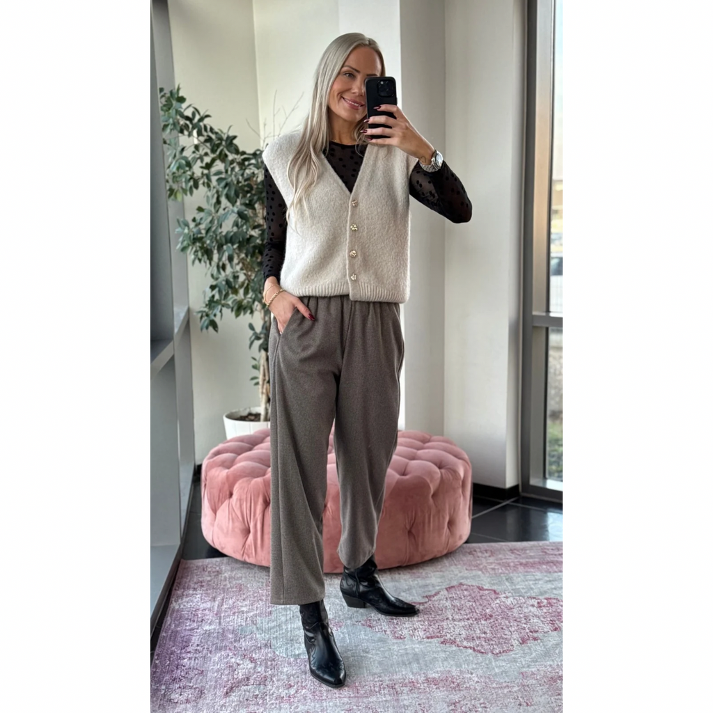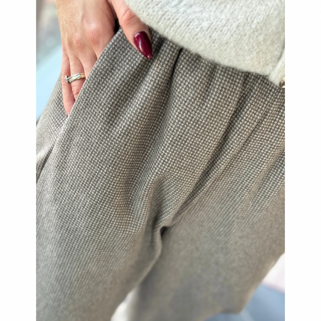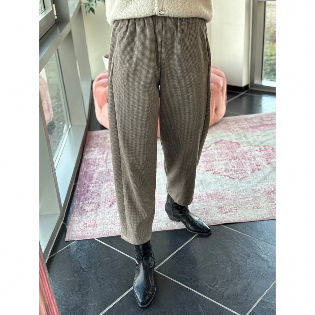 Super bløde bukse fra By Asbæk i tern i brunlige nuancer. Eva pants har elastiklinning og lommer i siden. Der er ingen lommer bagpå. De har lige ben med vidde. Buksen er en 7/8 benlængde.