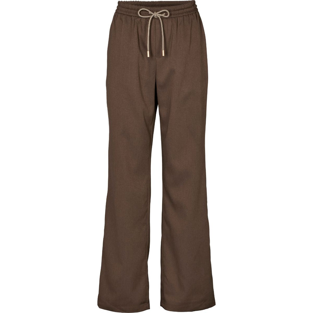 Gabby Pants i en smuk dybbrune farve med en dekorativ stribe langs ydersiden af benene. Bukserne har en løs og komfortabel pasform med elastisklinning og snøre i taljen for optimal komfort.