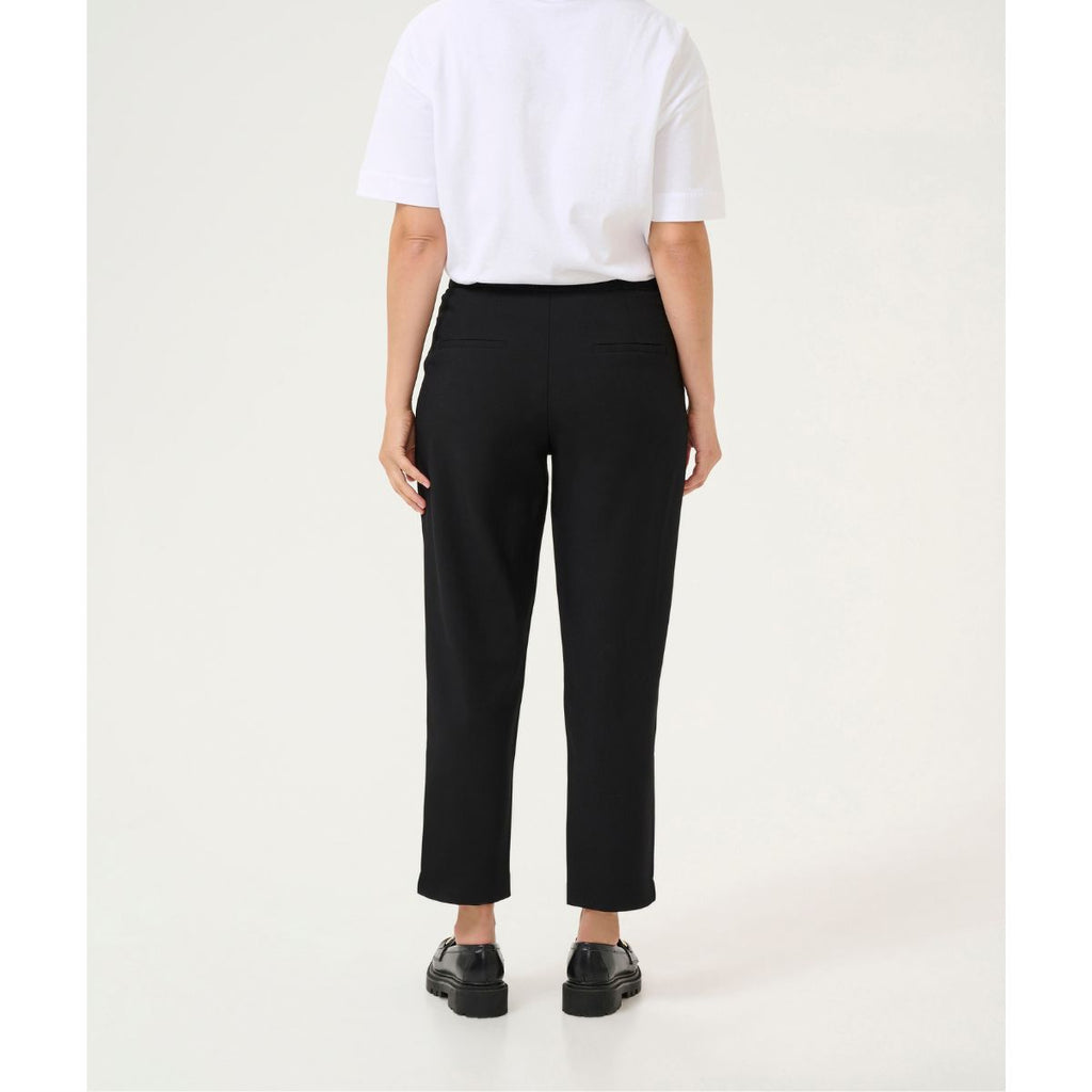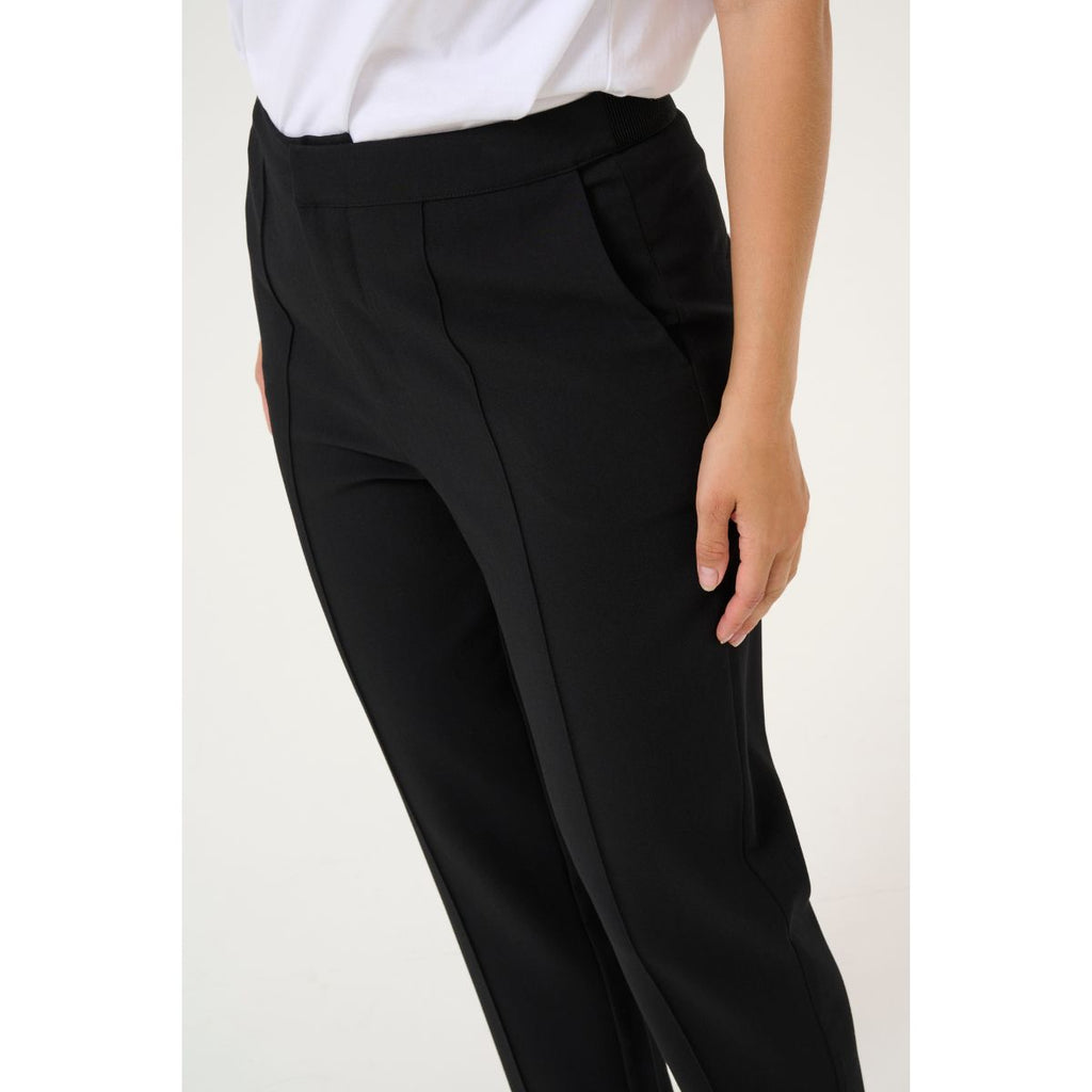 Fede cropped bukser fra Kaffe i en klassisk sort. Hella elastik pant er lidt "sweat" agtig i kvaliteten, men er et par pæne bukser, der har en syning foran, ligesom en pressefold. 7/8 længde, sidelommer, fast linning.