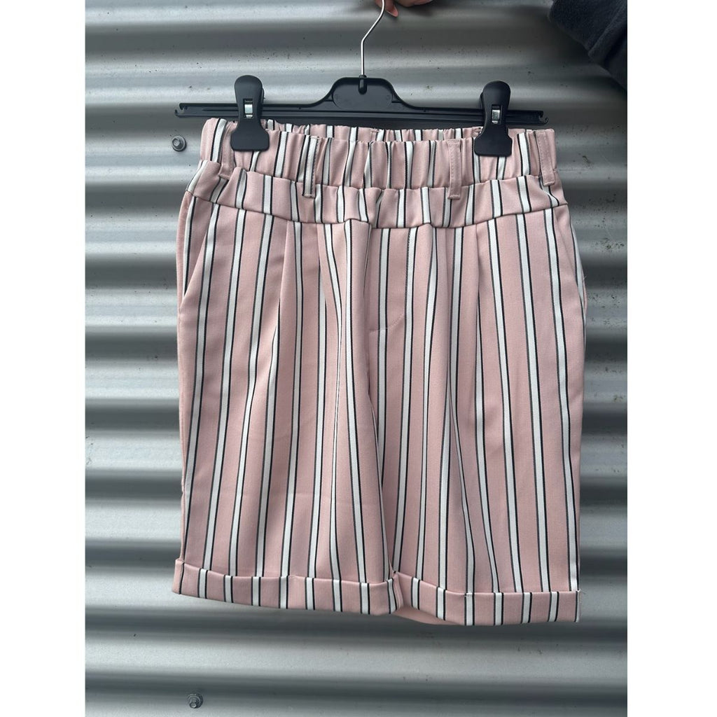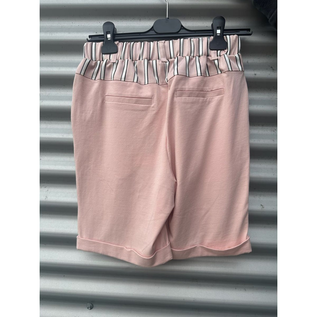 Super gode shorts fra Kaffe - foran er fast stof i striber - rosa/hvid/sort - bagpå. er det jersey i rosa - sidelommer