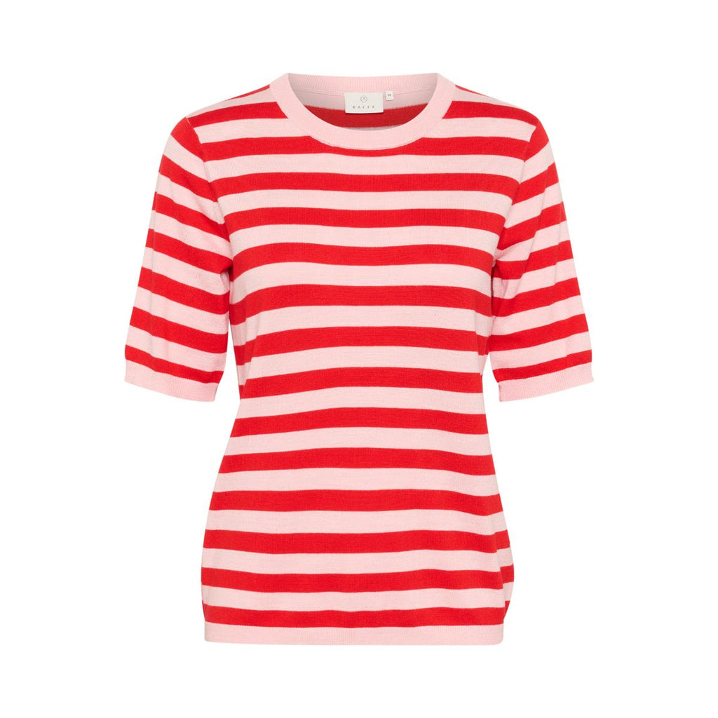 Virkelig skøn og blød stribet bluse fra Kaffe. Lizza striped knit har rund hals, korte ærmer og ribkanter ved hals, ærme afslutningen og i bunden af blusen. Den er perfekt til et par jeans eller inde under et jakkesæt.