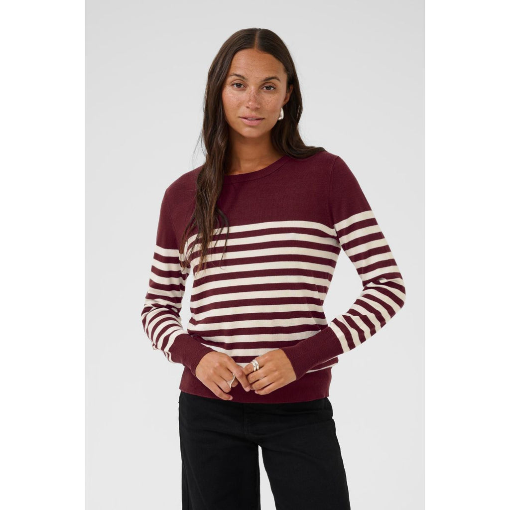 Virkelig skøn og blød stribet bluse fra Kaffe. Lizza striped pullover har rund hals, lange ærmer og ribkanter ved omkring, hals, ved ærme afslutning og i bunden. Den er perfekt til et par jeans eller indenunder et jakkesæt.