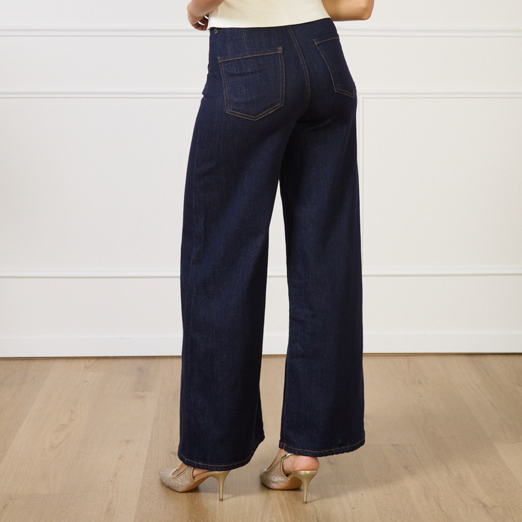 Super flotte vidde jeans fra By Asbæk  med stræk, høj talje og mellemlang benlængde. Luise jeans har lommer bagpå, en meget fin detalje foran så det ligner der er lommer, men er ikke brugbare til lommer. Luise jeans er mørkeblå med syninger i orange, der fremhæver de flotte detaljer. Brug dem til hverdag med en lækker strik eller brug dem til en festligere lejlighed med en flot skjortebluse.