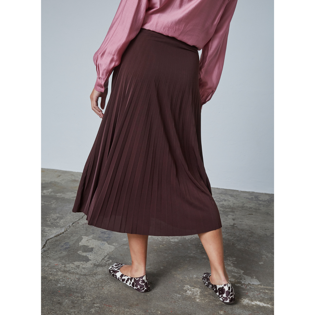 Rigtig flot plissé nederdel fra Sisters Point. Malou Skirt falder virkelig flot og kan bruges både til hverdag og fest. Den har en løs pasform og går ned til midt på skinnebenet.