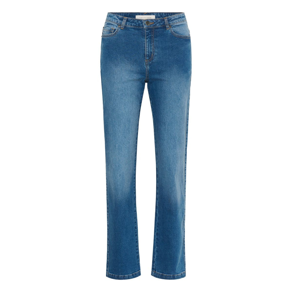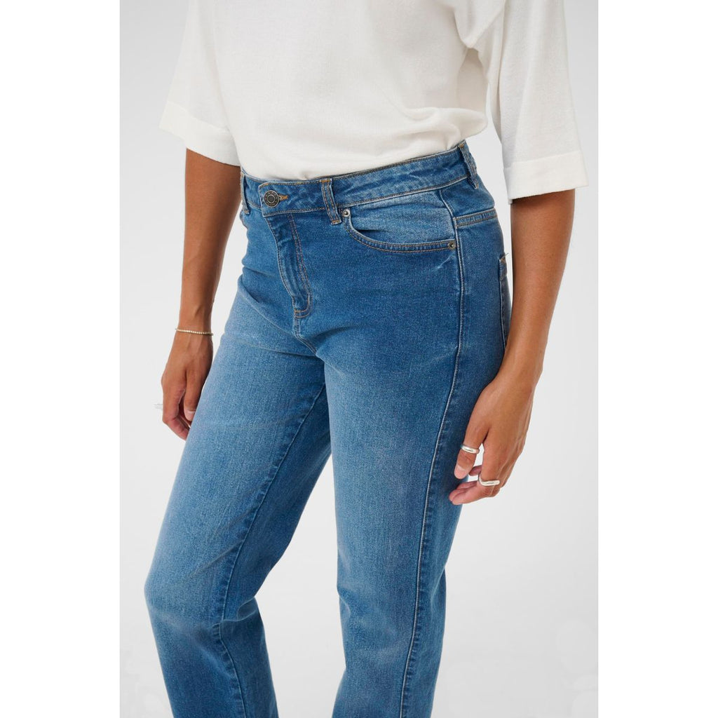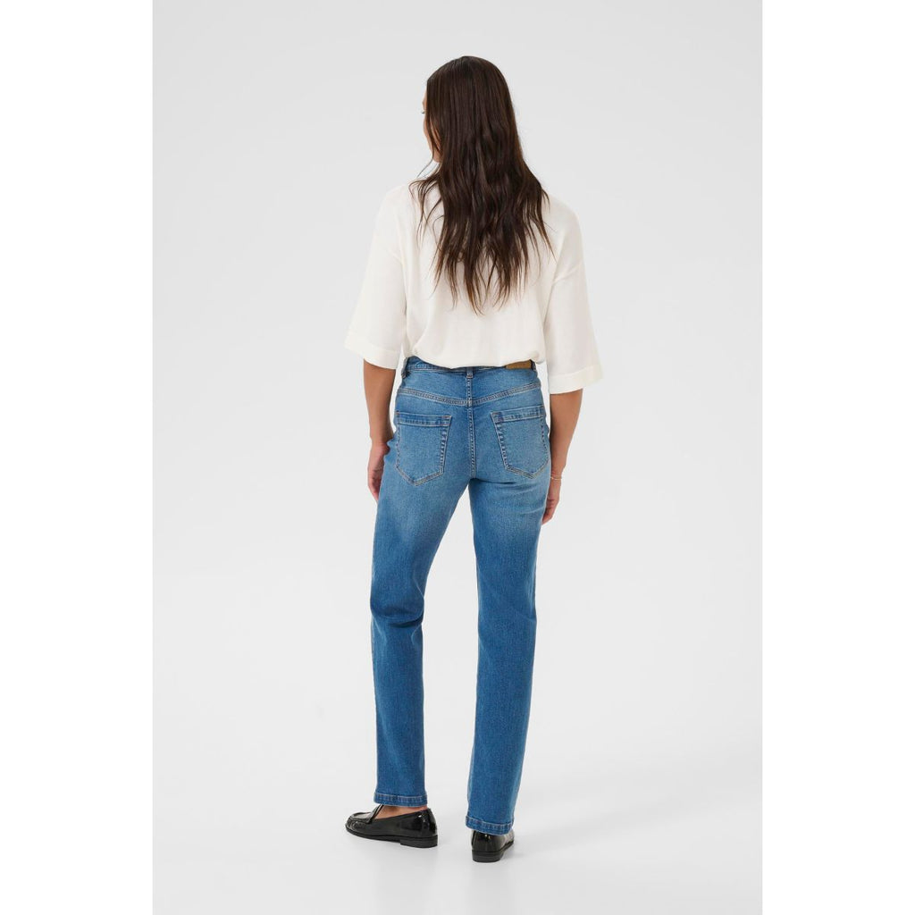 Helt klassisk jeans fra Kaffe. 5 pocket jeans - mega god pasform - høj talje - lige ben - længden er en fuld benlængde. Denne medium blue er helt klassisk lys vasket denim vask