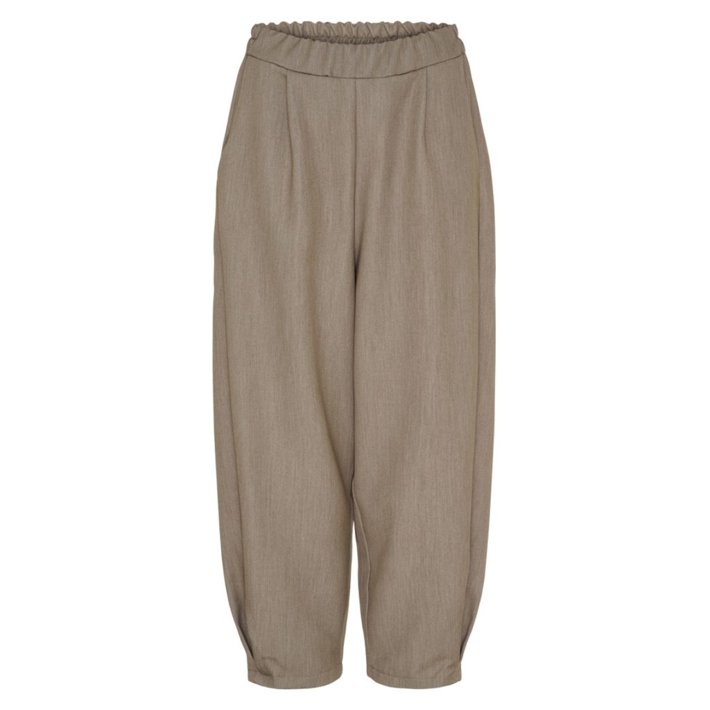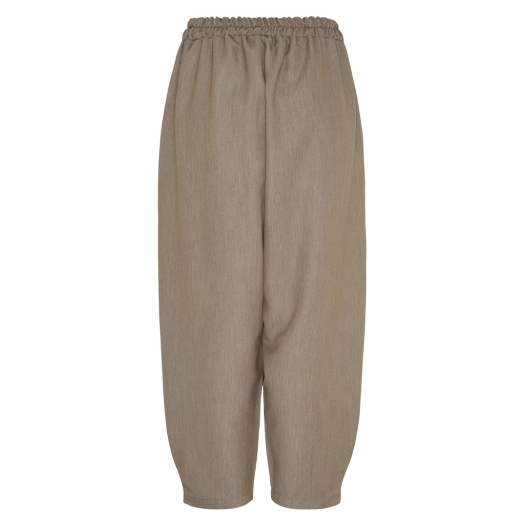 Cool bukser fra Marta du cháteau. i en flot fango/gråbrun farve. Den har elastik i taljen er baggy nedom, 7/8 længde ben med indsnit så de går en smule ind forneden - sidelommer. Stoffet er som en habit buks men er mere afslappet i looket/modellen.