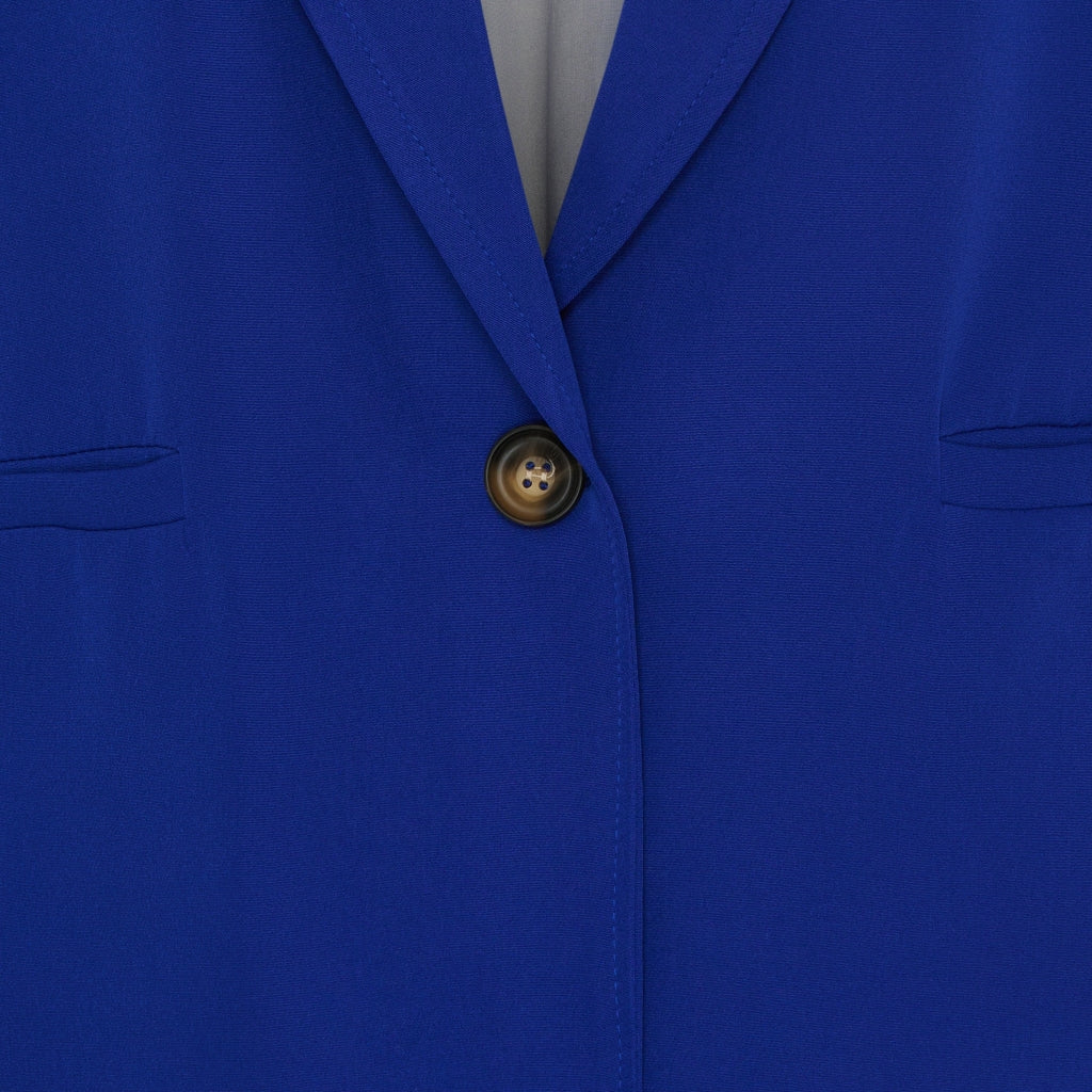 Den flotteste blazer i lækker kobolt blå fra Marta du cháteau. Blazeren er onesize og er derfor rummelig i størrelsen. Blazeren kan lukkes med 1 knap, eller bruges åben. Desuden har den 1 lomme i hver side.