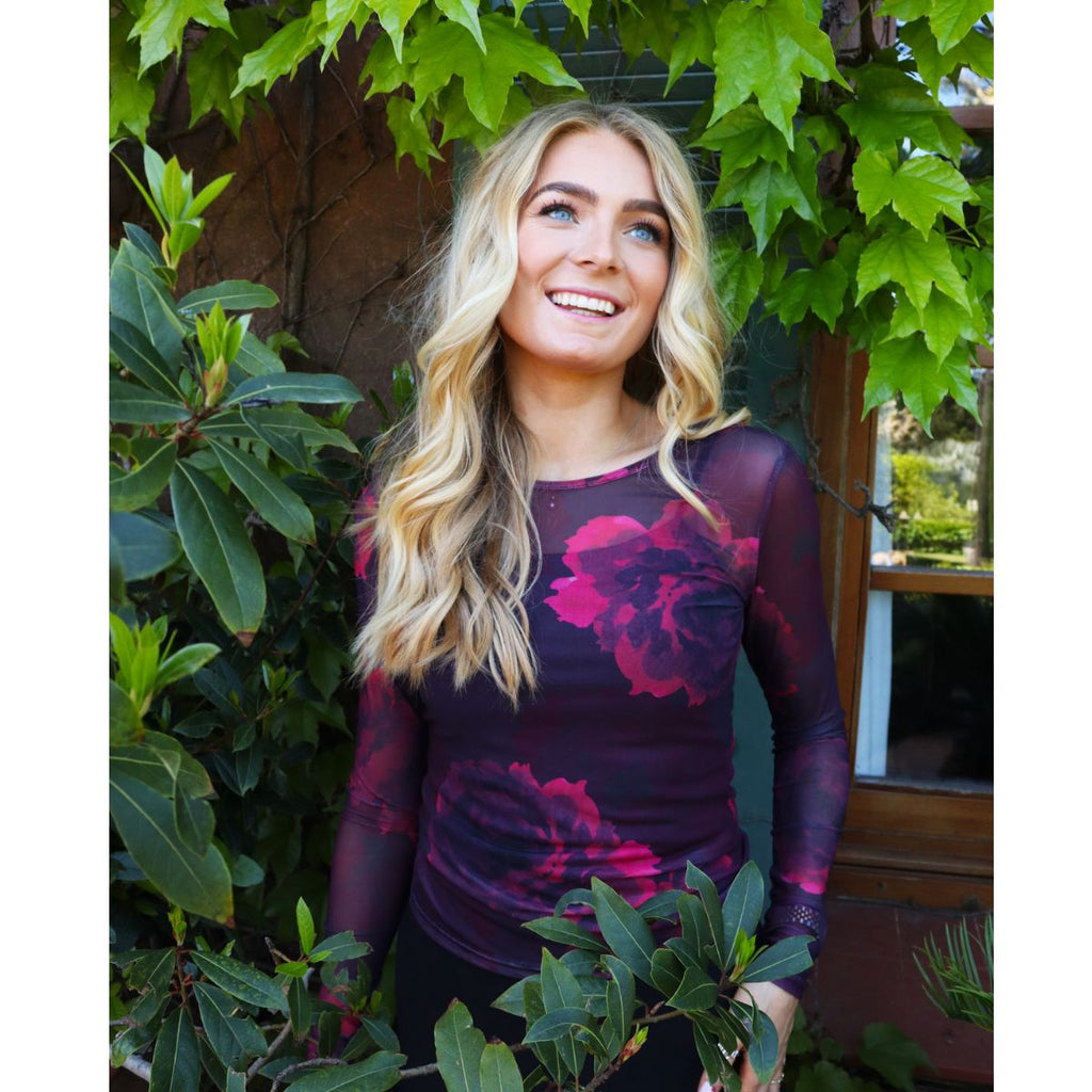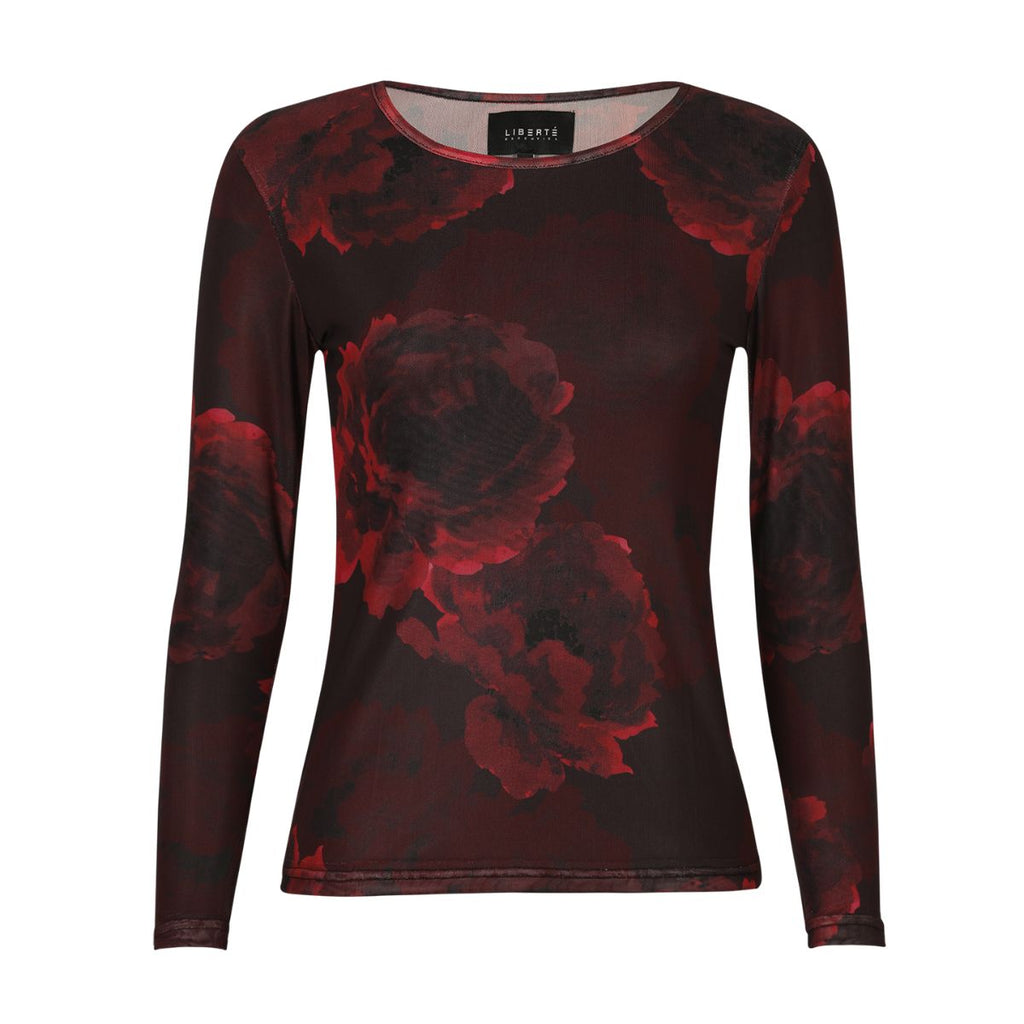 MESH LS T-SHIRT BLACK BORDEAUX FLOWER