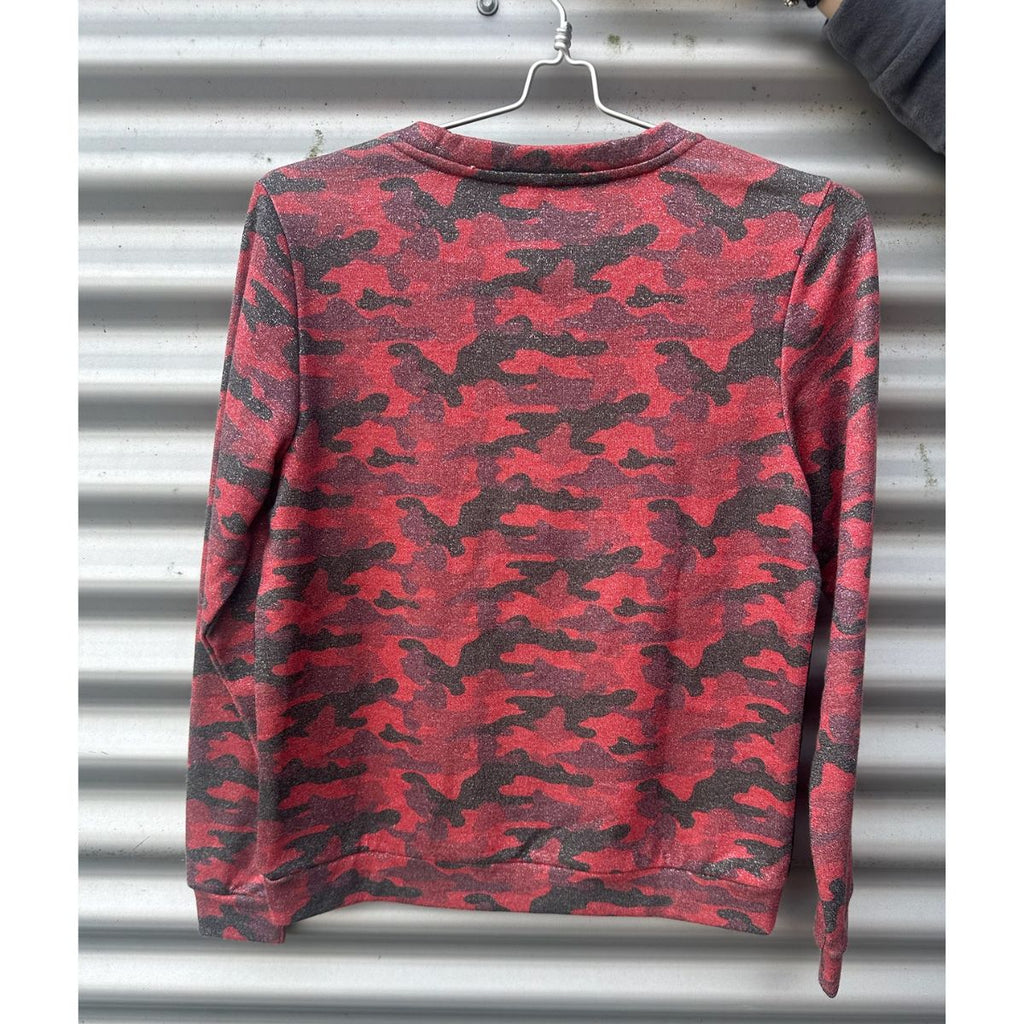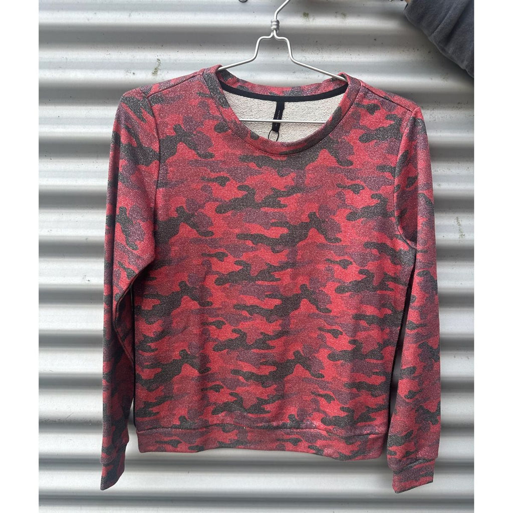 Cool seat shirt i rød camouflage print med glimmer - 55% bomuld - 35% polyester og 10% metal tråde