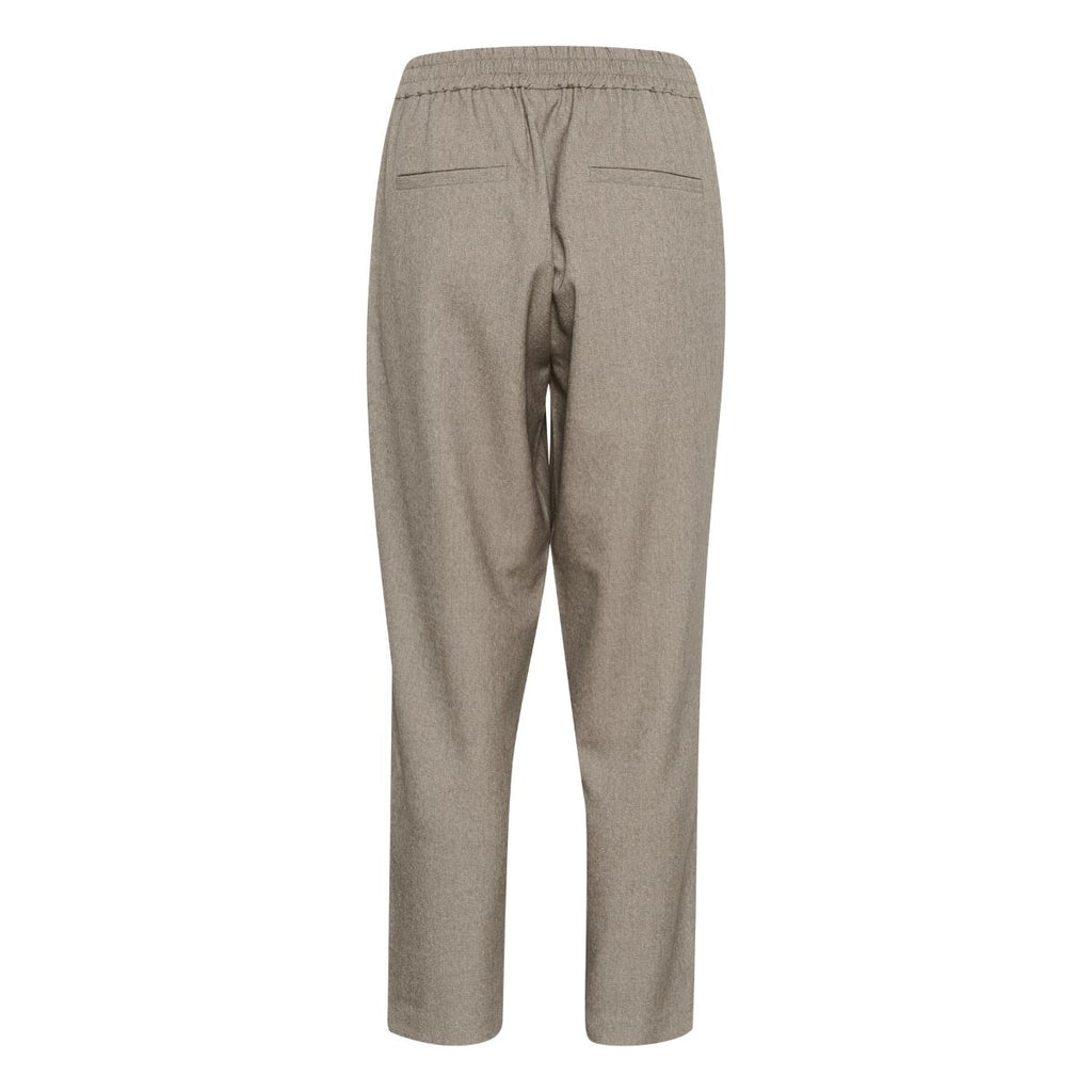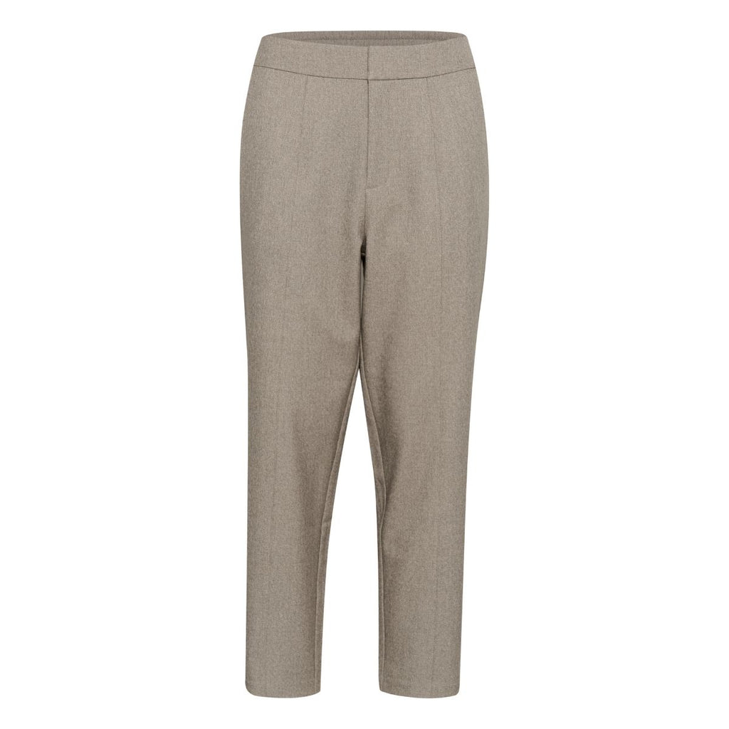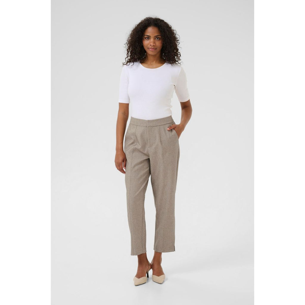 Fine højtaljede bukser fra Kaffe. Tilla cropped pant har elastik og et fast stykke i livet, skrålommer og paspel lommer bagpå. De har lige ben med vidde og pressefolder. Kan sammensættes med Tilla blazer der passer til.