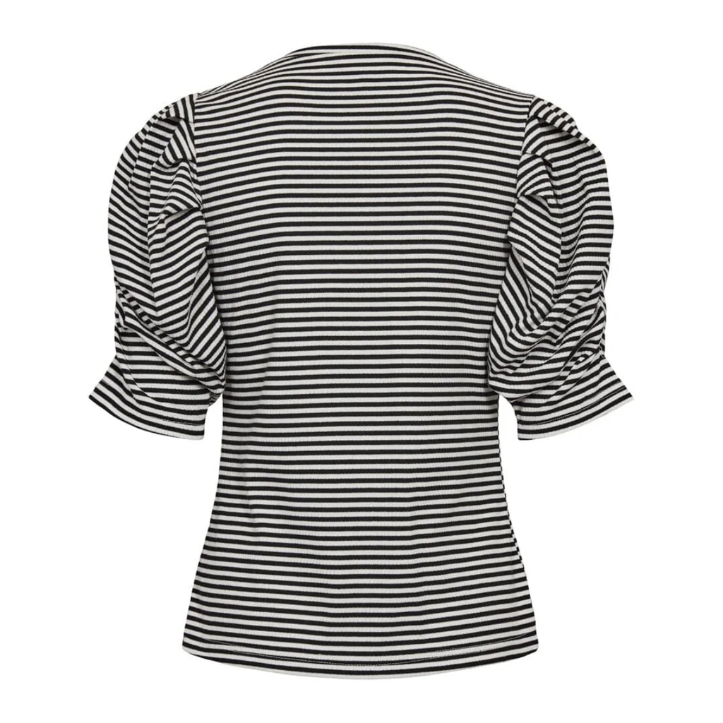 Rigtig sød t-shirt/bluse med pufærmer fra Liberté.  Den minder faktisk lidt om Winnie Blouse, men er nu bare lavet i en hverdags/basis version som t-shirt/bluse og i en rigtig lækker blød kvalitet. Den har rund hals, 3/4 ærmer og fine pufærmer, som gør den feminin og lidt mere end bare en t-shirt. Mega fin til et par jeans, men kan sagtens dresses op til et par sorte bukser.