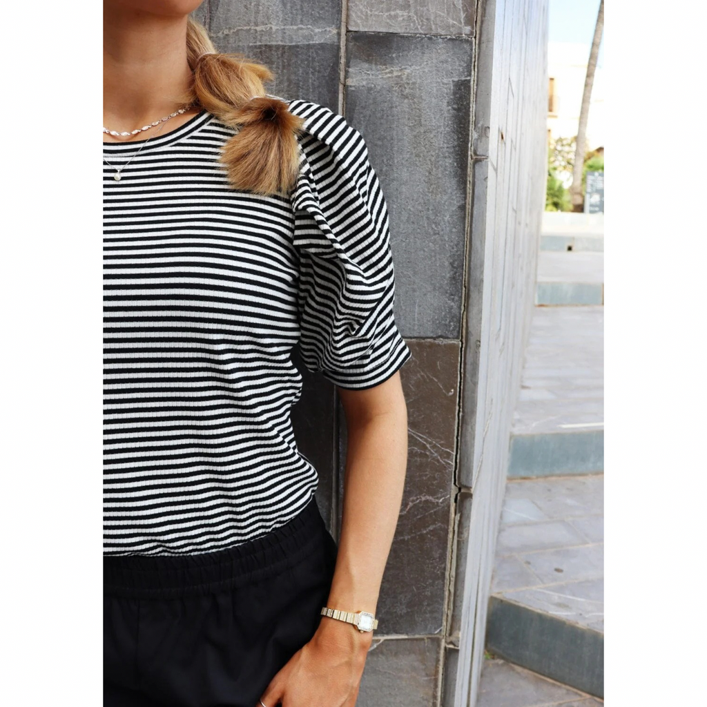 WIN PUFF T-SHIRT BLACK CREME SMALL STRIPE